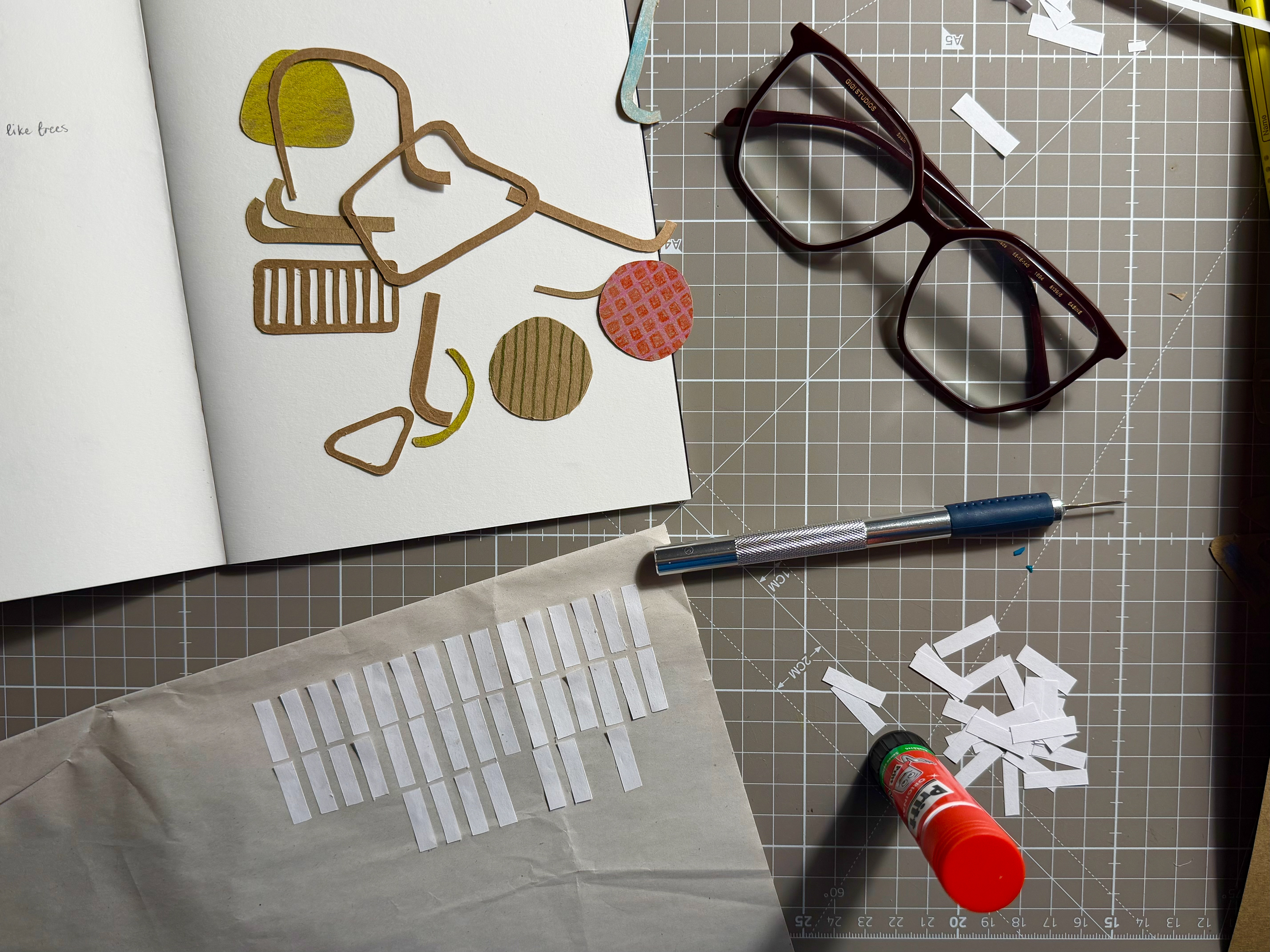 The posters were designed entirely by hand. I created the compositions by cutting and assembling pieces of different paper types, layering and gluing them together.
