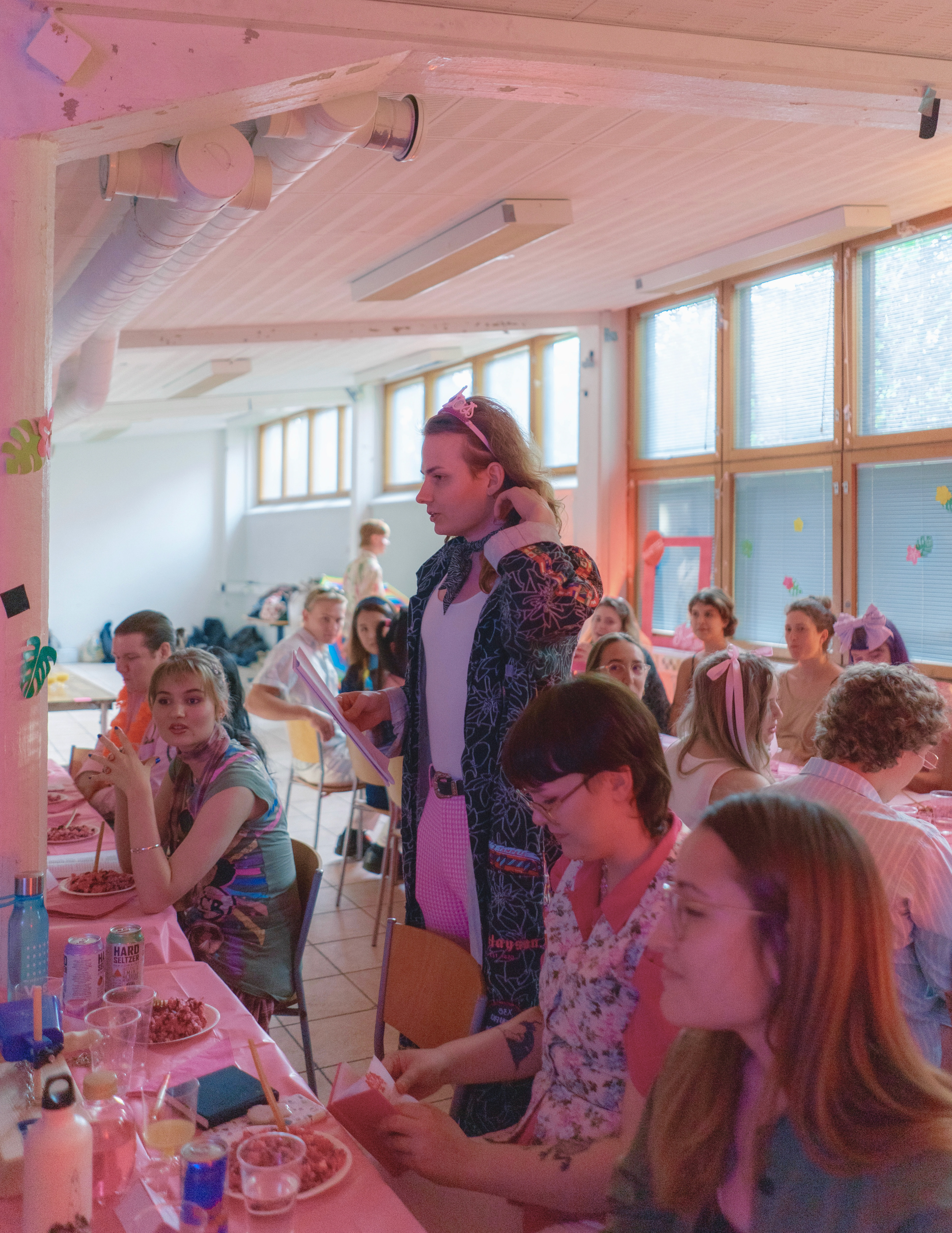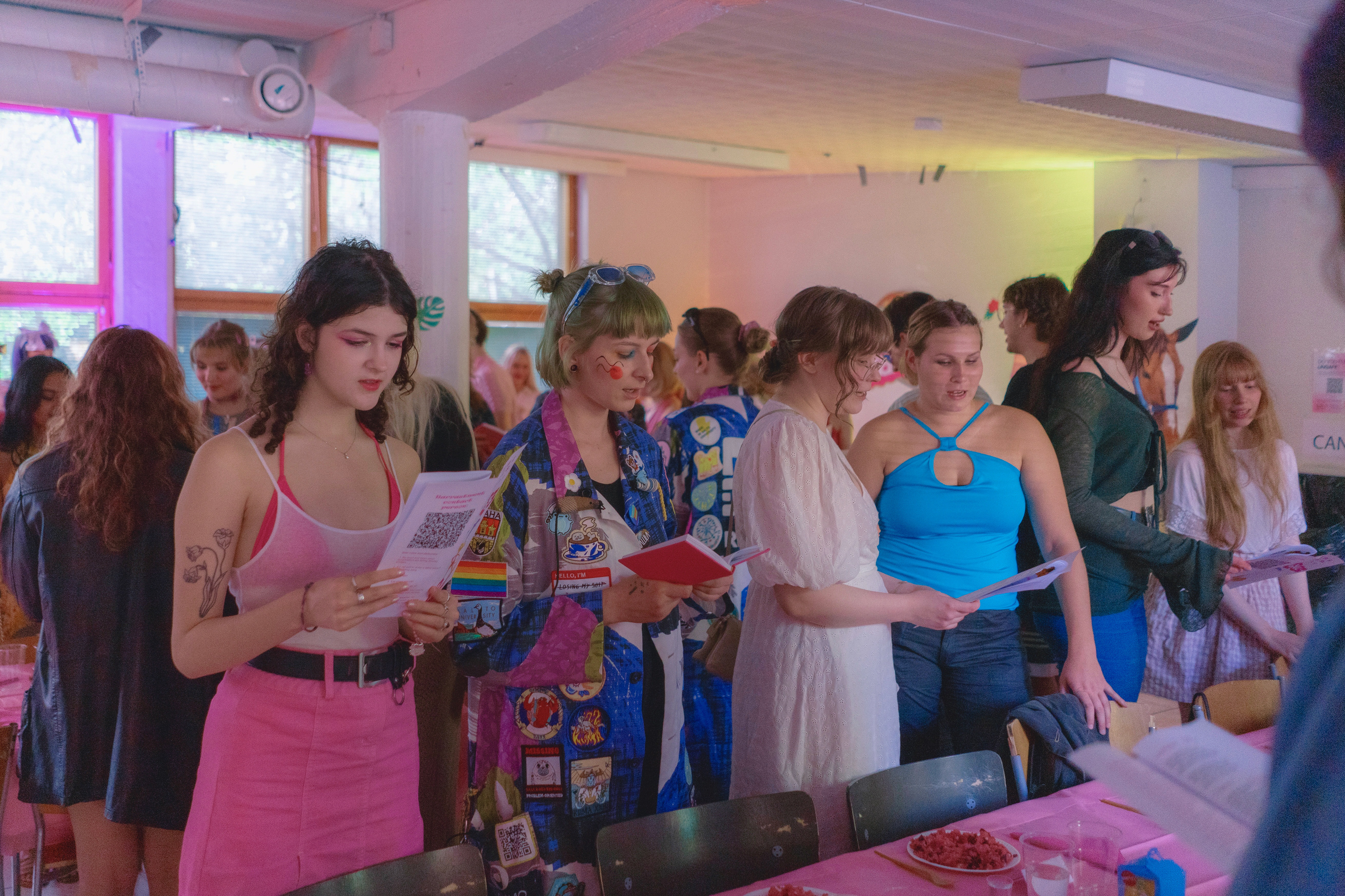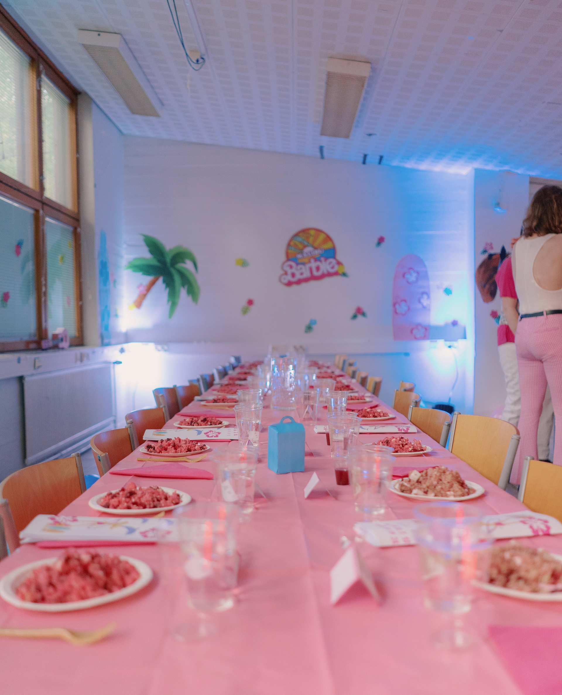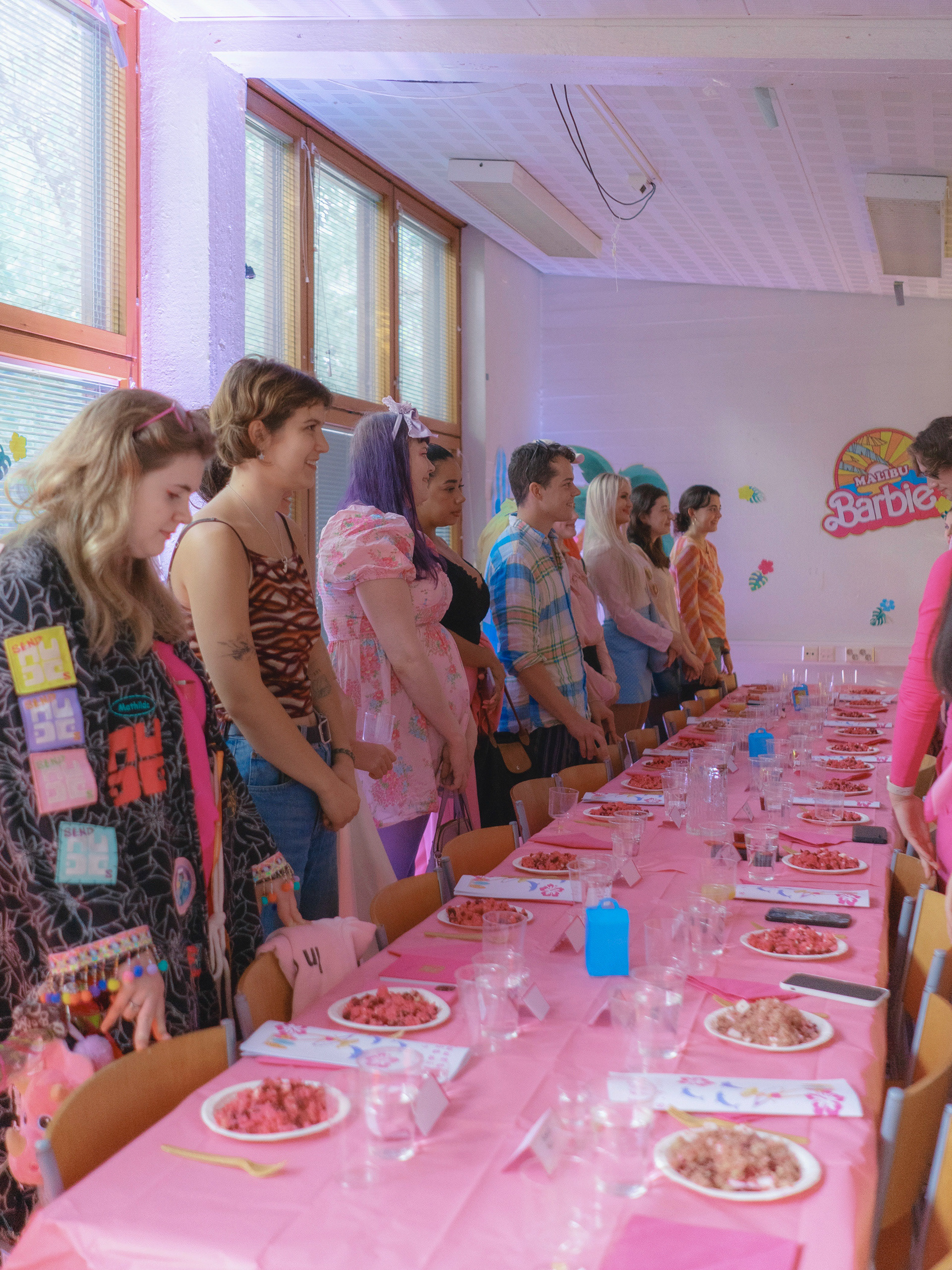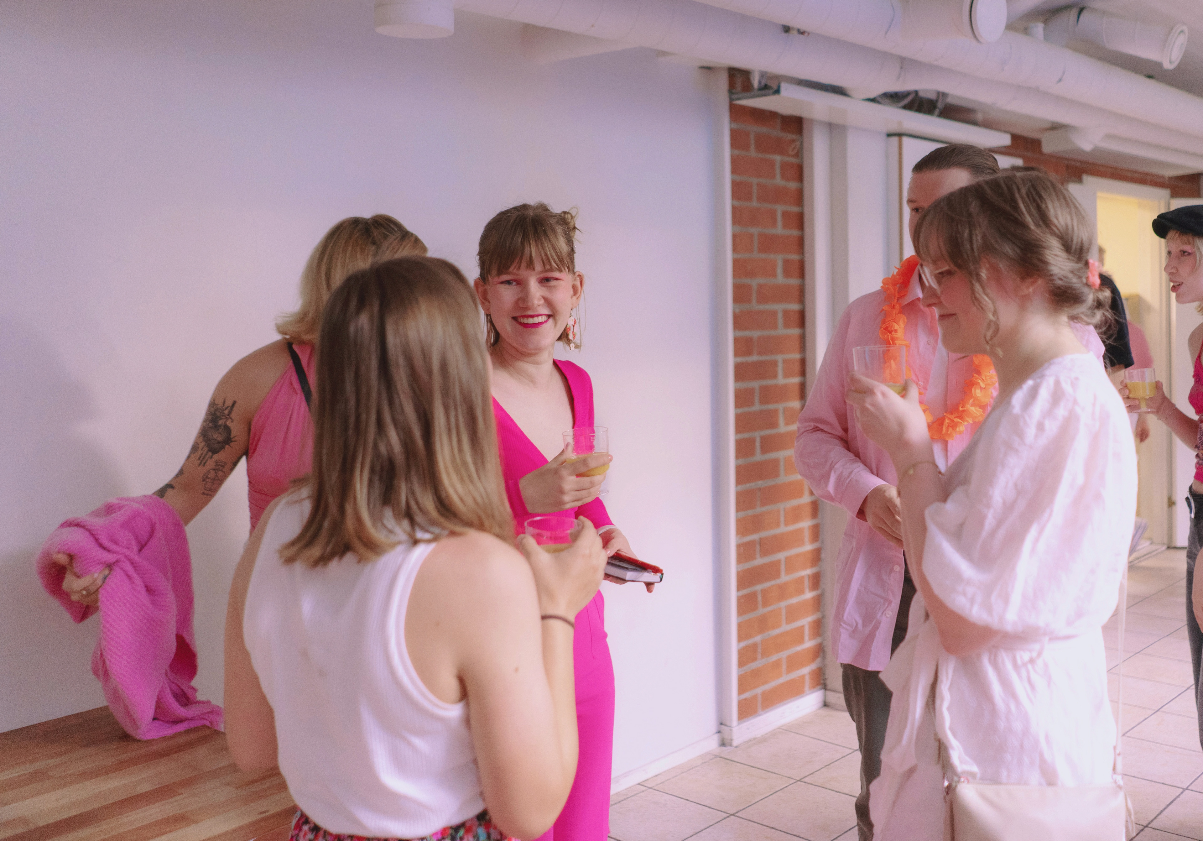 Photos of the Barbie-themed Kuutti Sitsit organized by Nuoret Designerit (NuDe) in the Fall of 2023 in Otaniemi, Finland.