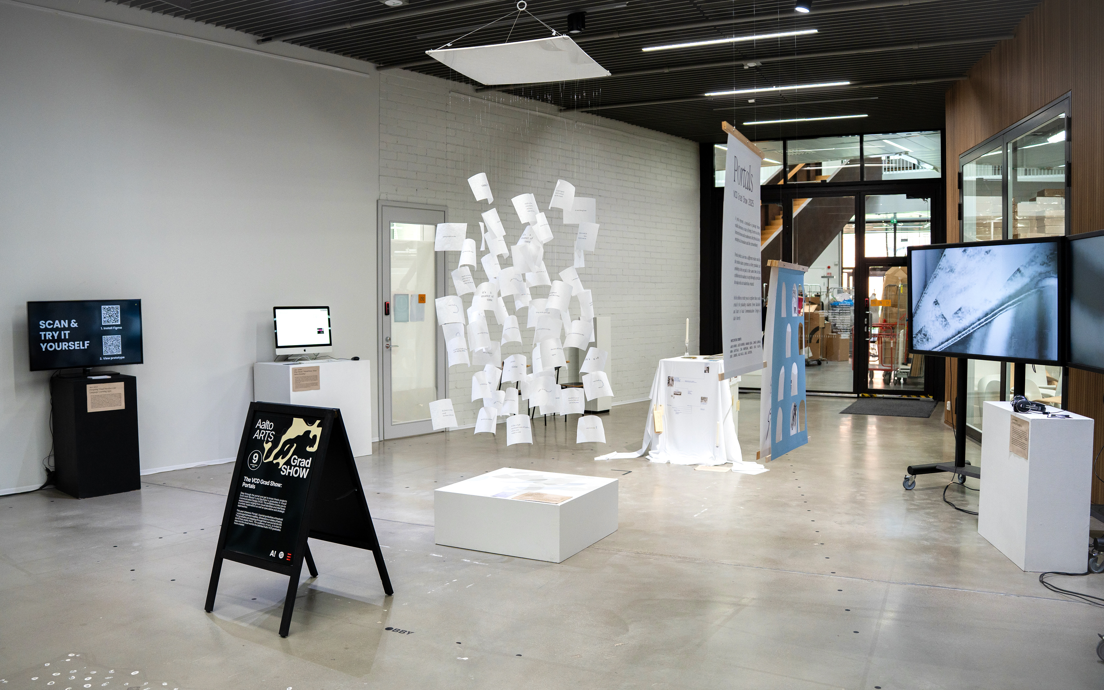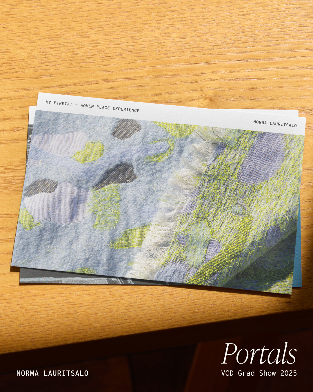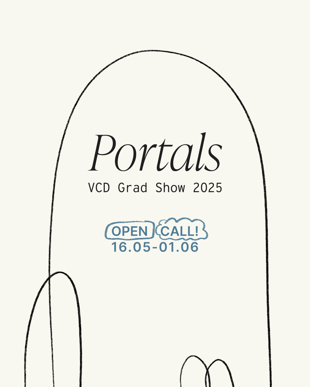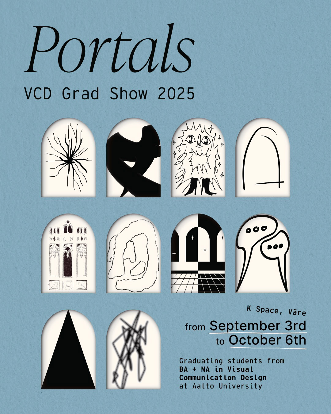 The guiding idea behind Portals was to create a framework rather than a focal point. As a graduation show, the spotlight should remain on the students’ work, with the visual identity acting as a supportive structure.